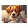 Kahve İçen Sevimli Köpek Model Ahşap Tablo 25cmX 35cm