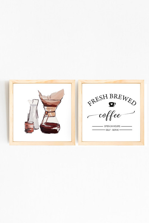 Kahve Köşesi Tasarımlı 2 Parça Dekoratif Ahşap Tablo Seti