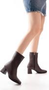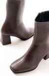 Kahve Topuklu Fermuarlı Kadın Bot