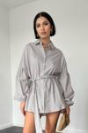 Kahverengi Çizgili Poplin Kuşaklı Gömlek