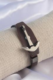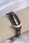 Tahtakale Toptancı Kahverengi Deri Model Gümüş Renk Çapa Figür Erkek Bileklik
