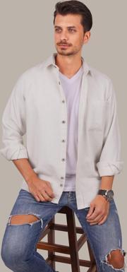 PayBuy Erkek Oversize Apaş Yaka Uzun Kollu Gömlek Basic Siluet Günlük Kullanım Yaz Aylarının Vazgeçilmezi