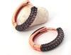Kahverengi granat taşlı bombeli rose gümüş halka küpe