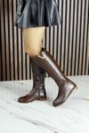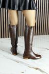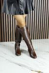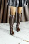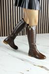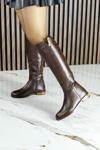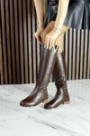 Erkan Saçmacı Kahverengi Hakiki Dana Derisi Metal Aksesuarlı Fermuarlı Yuvarlak Burun Kalın Topuklu Çizme