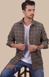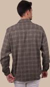 Kahverengi Hasır Desenli Oversize Oduncu Erkek Gömlek