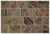 Kahverengi Patchwork Etnik Modern Desenli Yün Hav Toz Vermez Leke Tutmayan Salon Yolluk Mutfak El Dokuma Halı