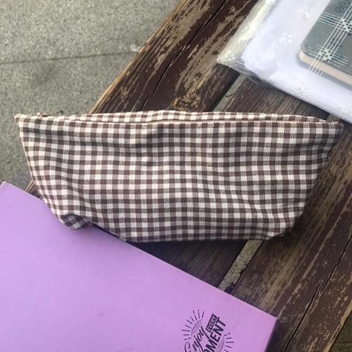 Sumicorn Design Kahverengi Pötikareli Yıkanabilir Fermuarlı Tek Göz Bez Kalemlik Kalem Kutusu Cüzdan Makyaj Çantası