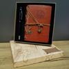 Kutu ölçüsü 16 cm x 17 cm x 4 cm olup kaliteli mukavva malzemeden üretilmiştir ve üzerindeki pusula baskısıyla dikkat çeker. 15 cm x 10 cm boyutundaki defter, deri kapaklıdır ve pusula baskısı ile süslenmiştir. Ayrıca deftere sarılı ipte dekoratif dümen ve çapa figürleri bulunur. Defter 70 yapraktan oluşur ve içi çizgisizdir. 14 cm x 1.5 cm boyutundaki siyah metal kalem hem tükenmez özelliğe sahiptir hem de arka kısmında bulunan silikon ucu sayesinde touchpen olarak kullanılabilir. Kalem, defter ve kutu yüzeyi baskıya uygundur, özel günler için kişiselleştirilebilir bir hediye seçeneğidir.