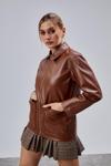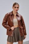 - Kadın Regular Fit Deri Ceket. Astarlı