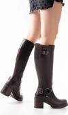 Toka Aksesuarlı Fermuarlı Günlük Kalın Topuklu Kadın Bot