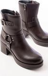 Toka Aksesuarlı Fermuarlı Kalın Topuklu Günlük Kadın Bot
