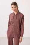 Tommy Life Kahverengi Yumuşak Dokulu Kapüşonlu Oversize Kadın Tunik Sweatshirt - 97302