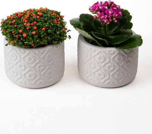 - Modern tasarımıyla evinizin dekorasyonuna şıklık katan 2'li beton saksı seti.; - %100 yerli üretim olup, kaliteli malzemelerle üretilmiştir.; - Genişliği 10 cm küçük alanları bile estetik bir şekilde süsleyebilir.; - Yüksekliği 8 cm olan bu saksılar, çiçeklerinizi zarifçe sergilemenize olanak tanır.; - Farklı bitki türleriyle uyum sağlar.; - Dayanıklı beton materyali sayesinde uzun ömürlü kullanım sunar.; - Set içerisinde bulunan 2 adet saksı ile hem kendiniz için hem de sevdiklerinize hediye olarak idealdir.; - Hafif yapısıyla kolayca taşınabilir ve herhangi bir alanda rahatlıkla kullanılabilir.; - Yuvarlak şekliyle modern ve zamansız bir görünüm kazandırarak mekanınıza sofistike bir dokunuş ekler.;
