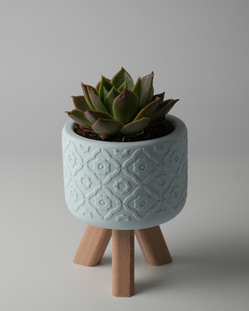 Dekoratif Beton Saksı - Otantik Çiçek - Mavi