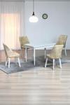 - 4 adet Krem renkte sandalyesi, konforlu oturma imkanı sunarken krem rengiyle mekanınıza sıcaklık katar.