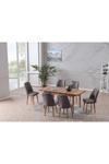 Paket içeriği : açılabilir masa + 6 adet sandalye Ayaklar : Masa ve sandalyelerimiz gürgen ağacından kahverengi renk lake boyalıdır.