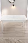 Kaktüs Avm Sera Beyaz 80 X 132 Açılabilen Sunta Masa Beyaz Metal Ayaklı Mutfak Masası 6 Krem Desen Sandalye