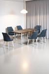 - Altı adet kot füme sandalyesiyle tamamlanan set, mutfak dekorasyonunuza şık bir dokunuş katar.