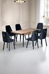 Kaktüs Avm Sonata Ceviz 80 X 132 Açılabilen Sunta Masa Siyah Metal Ayaklı Mutfak Masası 6 Siyah Sandalye