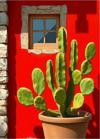 Kaktüs Ve Kırmızı Duvar Modern Mdf Tablo 25cmX 35cm