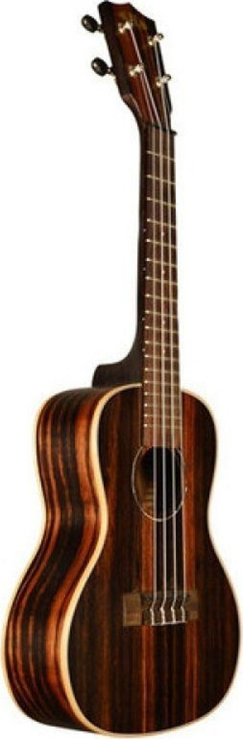 Kala Ebony Soprano Ukulele, geleneksel ukulele yapısına egzotik bir ton ağacı dokunuşu getiriyor. Ukulelenin üst, arka ve yan kısımlarında güzel abanoz parçaları kullanılır. Abanozun yoğun yapısı nedeniyle, enstrümana çok piyano benzeri bir artikülasyon kazandırır. Ve çizgili görünümü, kendine has orijinal görünümüyle nefes kesicidir.