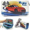 Limmy Kalem Kutusu Araba Cars Kawai Organizer Kalemkutu Vegan Deri Üç Bölmeli Kalemlik - Mavi