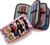 Kalem Kutusu Black Pink Organizer Kalemkutu Vegan Deri Üç Bölmeli Kalemlik-Siyah