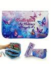 Limmy Kalem Kutusu Kelebek Kawai Organizer Kalemkutu Vegan Deri Üç Bölmeli Kalemlik -Mavi