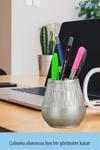 Kalemlik Gümüş Renk Masa Kalemliği Organizer Kalemlik Vazo Model