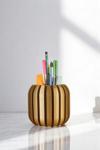 Kalemlik Altın Renk Masa Kalemliği Organizer Kalemlik Dönen Çizgili Model - Image 1