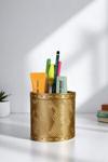 Kalemlik Altın Eskitme Renk Masa Kalemliği Organizer Kalemlik Düz Çizgili Model - Image 1