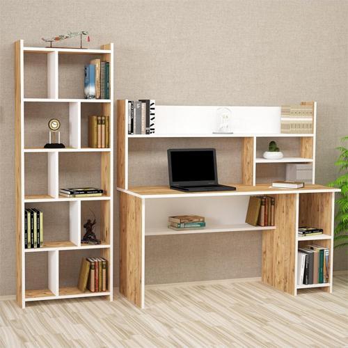Jest Dekor Konsept Vera Beyaz 4 Raflı Ahşap Kitaplıklı Çalışma - Ders - Bilgisayar Masası - Çift Yönlü Kullanım – Demonte