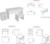 Ürünlerle İlgili İstenen Özellikler Masa: Genişlik: 150 cm. Derinlik: 58 cm. Yükseklik: 74 cm. Sehpa: Genişlik: 60 cm. Derinlik: 44.5 cm. Yükseklik: 45 cm. Keson: Genişlik: 41 cm. Derinlik: 40 cm. Yükseklik: 56 cm. Malzeme : Suntalam