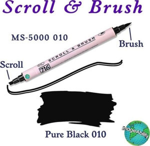 Zig Scroll & Brush Çift Çizgi ve Fırça Uçlu Kaligrafi ve Gölgeleme Kalemi 010 Pure Black