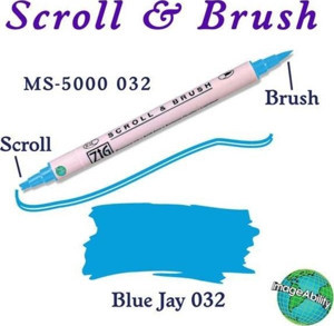 Zig Scroll & Brush Çift Çizgi ve Fırça Uçlu Kaligrafi ve Gölgeleme Kalemi 032 Blue Jay