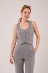 Kalın Askılı Düğmeli Yelek Ve Pantolon Gri Takım