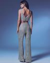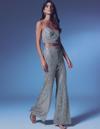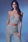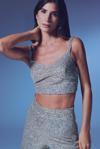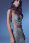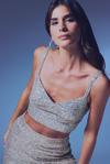 V yaka, iç astarlı, arka fermuarlı, kalın askılı payet crop bluz.