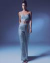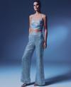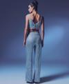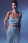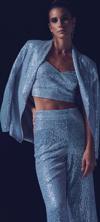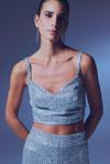V yaka, iç astarlı, arka fermuarlı, kalın askılı payet crop bluz.