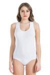 Geniş askılı sporcu alttan çıtçıtlı kadın body modelidir. Pamuklu ve likralı kumaştan üretilmiştir.