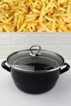 Kalın Emaye Kızartma Tenceresi Fritöz 22cm Cam Kapaklı
