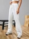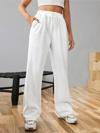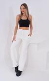 Beyaz Şardonlu Kalın 3 Iplik Rahat Kalıp Bol Paça Kadın Eşofman Altı