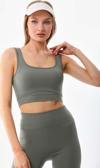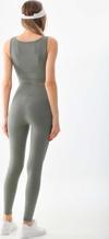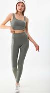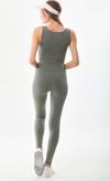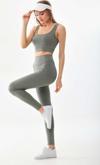 Haki Toparlayıcı Esnek Yüksek Bel Fitilli Spor Tayt - Crop Takım