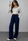 Wide leg kalıbı sayesinde modern ve geniş bir siluet sunar, konforlu bir kullanım vaat eder