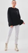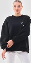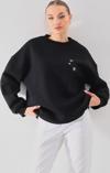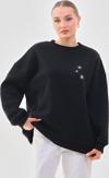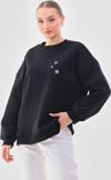 Kallima Oversize/Rahat Kalıp Kar Tanesi Desenli Içi Polarlı Kalın Siyah Kadın Sweatshirt