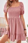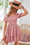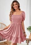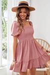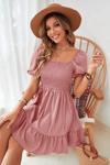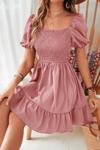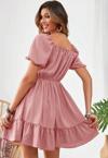 Pembe Carmen Yaka Fırfırlı Diz Üstü Gipeli Aerobin Elbise 95 Cm