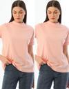 Pudra Pembe 2'Li Paket Dik Yaka Rahat Kalıp %100 Pamuk T-Shirt