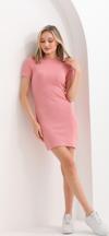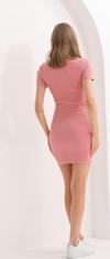 Kallima Pudra Pembe Vücuda Oturan Kısa Kollu Bisiklet Yaka Diz Üstü Fitilli Esnek Kaşkorse Kalem Elbise