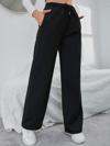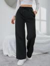 Kallima Siyah Kışlık Kalın Şardonlu Içi Polarlı Yüksek Bel Bol Paça Bağcıklı Gizli Cepli Eşofman Altı