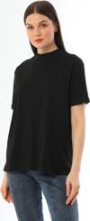 Defys Kadın Kısa Kollu Kayık Yaka Tişört Siyah