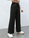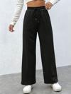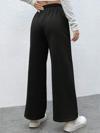 Siyah Önü Dikişli Içi Polarlı Kışlık Kalın Yüksek Bel Bol Paça Rahat Kalıp Eşofman Altı